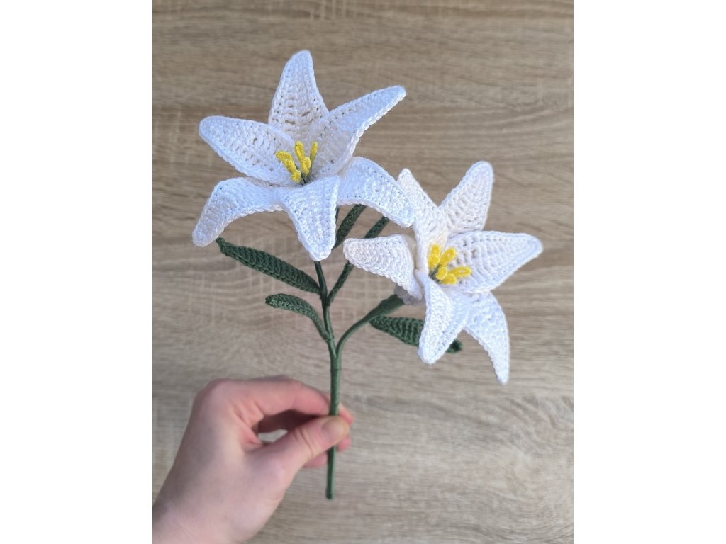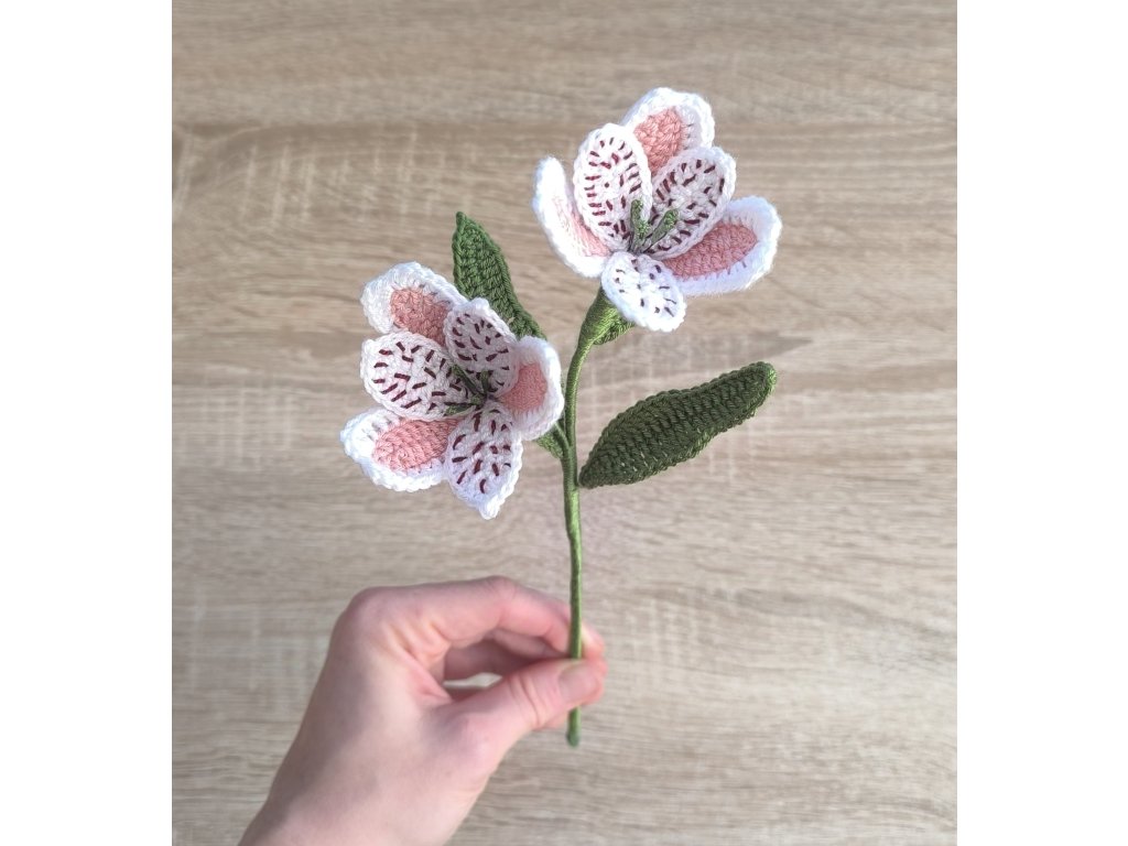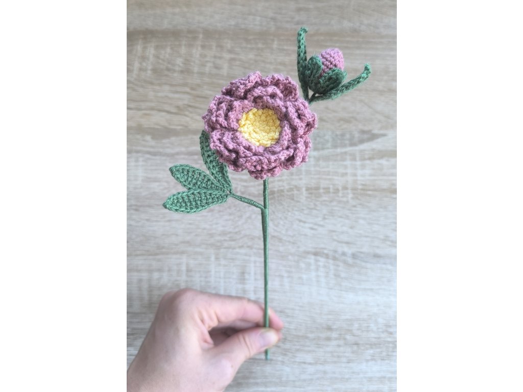 Každá květina je ručně háčkovaná s láskou a pečlivostí z akrylového mikrovlákna. Díky drátkům uvnitř ji můžete jemně tvarovat podle potřeby.