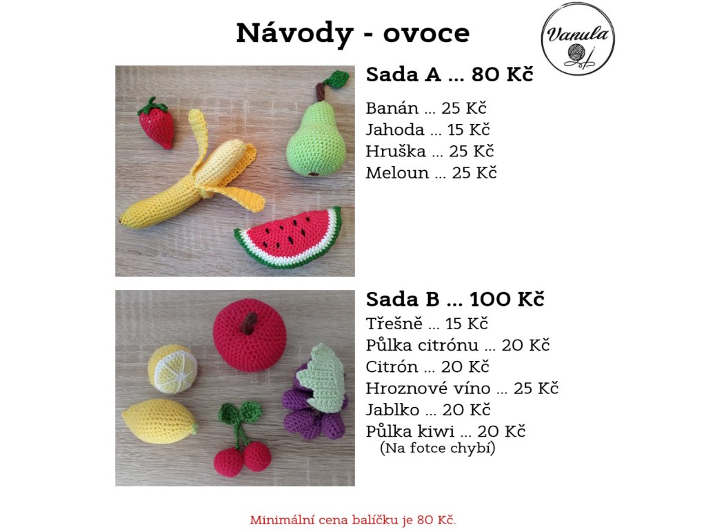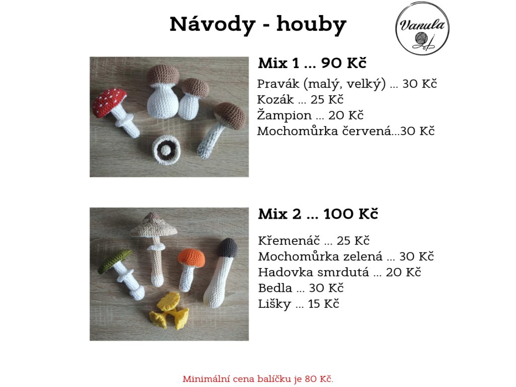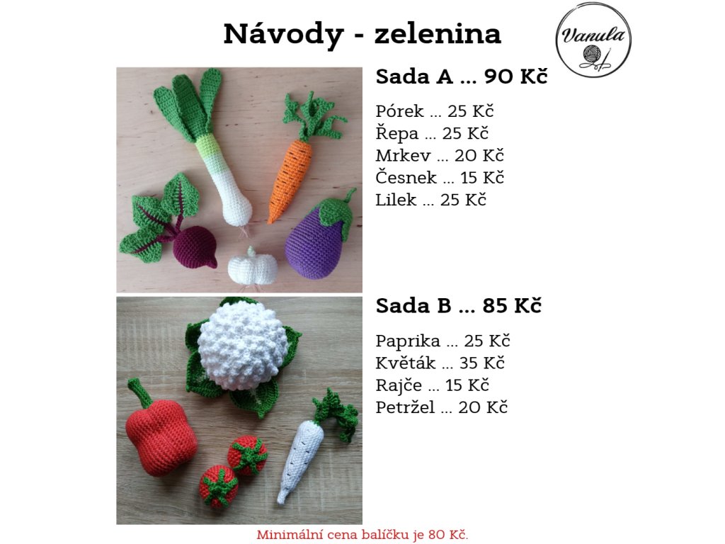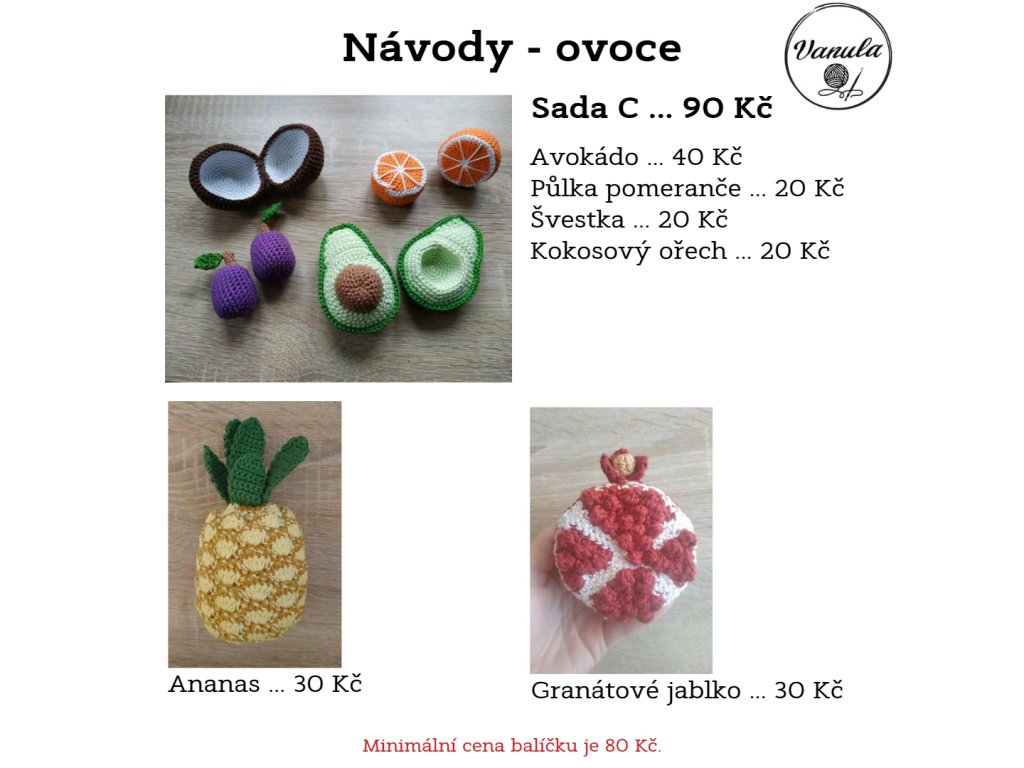 Návody zde na e-shopu je možné zakoupit pouze jako dané balíčky. Pokud máte zájem o jednotlivé návody, min. cena vašeho balíčku je 80 Kč a v tomto případě mě kontaktuje buď na e-mail: vanula06@seznam.cz na instagram: @vanula.crochet.